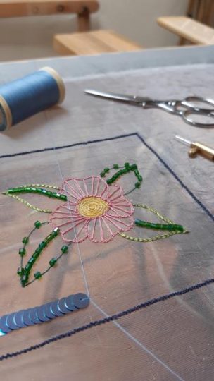 Cours et stages de broderie main, différentes techniques, tous niveaux.