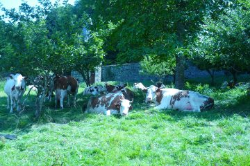 Ferme en agriculture biologique, 25 vaches montbéliardes. Production de fromages type montagne, bleu de Chateaubrun, fromage blanc, crème et tomme fraîche. Pas de visite de la ferme pour le moment, uniquement la vente.