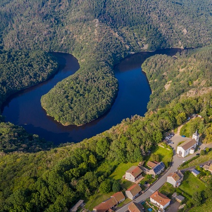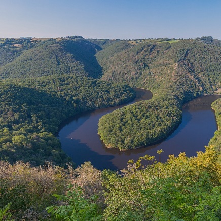 Le point de vue du méandre de Queuille ponctue ce voyage par un air d’amazonie. Forêt luxuriante, large méandre long de 2 km, seuls les rapaces tels que le Milan royal ou l’aigle botté vous rappelleront que vous êtes en France !