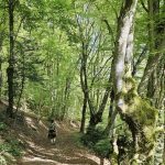 À l'entrée du hameau, bifurquer à gauche, puis monter jusqu'à un carrefour (vue sur le village de Vitrac). Tourner à gauche puis rapidement à droite (panneau d’information sur le méandre de Queuille) et descendre un large chemin dans la forêt. Ignorer un chemin à droite et parvenir à un gros bloc rocheux sur la droite (de son sommet - ascension délicate - vue sur la vallée de la Sioule). Poursuivre la descente sur le chemin principal, en ignorant les chemins latéraux jusqu'au passage sous une ligne électrique haute tension.