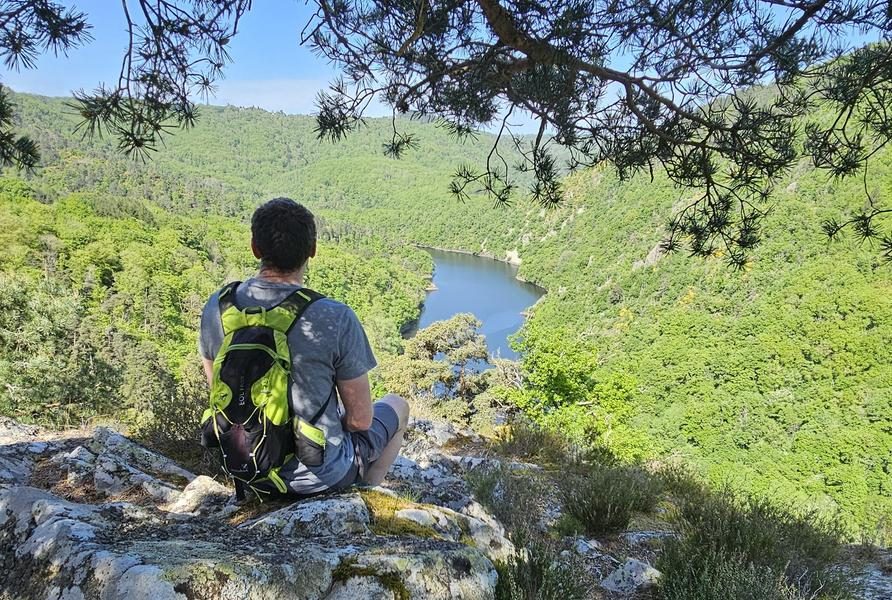 Une petite boucle dans des paysages typiques des Combrailles. l'itinéraire serpente en sous bois jusqu'à l'aplomb de la retenue du barrage et offre à Grand Motaillas une belle vue sur les gorges de la Sioule.