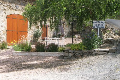 5 - Obliquer à droite sur la D110 (route principale de ''La Vialle'') puis, à 100m, descendre à gauche en direction du lieu-dit ''Les Peyroux''.