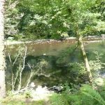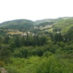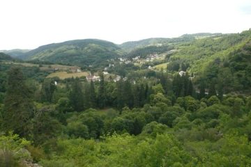 3/ Aller à droite et traverser le village en suivant les rues de Laschamps puis du Chabagnat. Monter par la route. Prendre le premier chemin à gauche après le panneau de sortie du village et, à l‘intersection, descendre rapidement jusqu’au confluent de deux ruisseaux. Poursuivre vers l’aval, franchir deux passerelles, et remonter jusqu’à la route (D227).