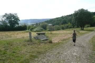 4/ La traverser et s’engager sur le chemin descendant le long du talus. À la première fourche, obliquer à droite, puis à la seconde se diriger à gauche. Continuer pour atteindre une route. La suivre à droite sur 300 m. À hauteur d’une entrée monumentale, tourner à droite dans le chemin le long d’un haut mur. Contourner la chapelle (PP1 : chapelle Saint Valentin) et poursuivre en descendant jusqu’à une route. La traverser (attention ! mauvaise visibilité). Descendre en face. À la route, aller tout droit et traverser le hameau de Lavaux. Emprunter la passerelle sur la Sioule, puis suivre la route à droite pour rejoindre le point de départ.