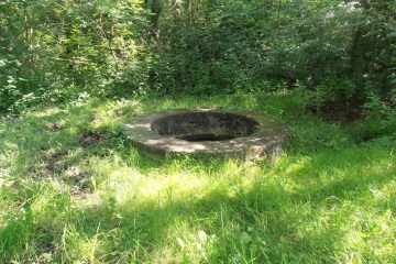 3 – Faire demi-tour pour revenir au panneau et partir à droite. Descendre jusqu’au ruisseau, franchir le gué et remonter jusqu’au hameau des Jouffrets. À la fourche dans le hameau, monter à gauche la « rue des Jouffrets » (plusieurs puits). Au carrefour avec une croix, prendre à gauche la route (direction Laligier, La Tour Serviat) sur 50 m puis obliquer dans le chemin à droite. À hauteur d’un étang privé, monter à gauche en bordure de pré et, en haut, continuer jusqu’à l’orée d’une forêt. Poursuivre alors en face dans le sentier qui descend rapidement. Au croisement en T, aller à droite. Au stop, emprunter la route à gauche sur 30 m puis descendre dans le chemin à droite. Retrouver la route et, avant l’église, rejoindre le point de départ.