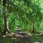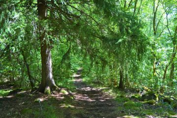 2/ La suivre à droite et dans la courbe, prendre un chemin en face. Passer une barrière, pénétrer dans la cheire (coulée volcanique du puy de Côme) entre bouleaux et noisetiers. Arrivé à un large chemin sablonneux, se diriger à gauche, franchir une seconde barrière, poursuivre jusqu'à une route.