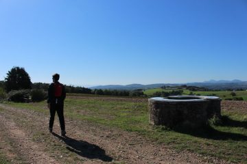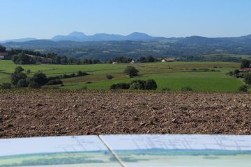 4 – La traverser, monter le sentier en face et aller tout droit jusqu’à la deuxième intersection. Se diriger à gauche jusqu’à la table d’orientation (vue sur les gorges de la Sioule, les monts de la Madeleine et la chaine des Puys)