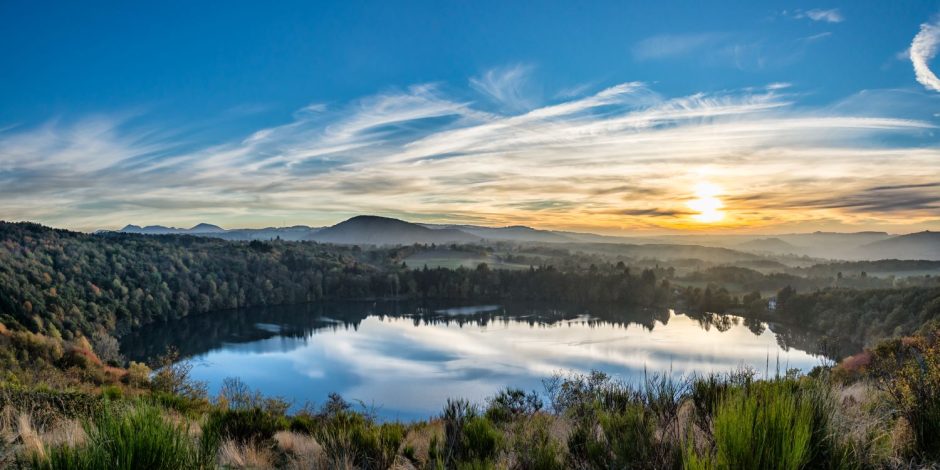 Cercle parfait de 700 m de diamètre et profond d'environ 66 m, le gour de Tazenat est un lac de cratère, ou maar, dont les eaux limpides abritent une faune aquatique variée.