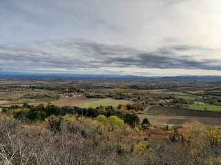 4/ S'orienter à droite dans la rue du Puy de Montaury, continuer à droite par le chemin des Vignes. Longer des maisons par une sente étroite qui amène rue du Puits, débouchant sur la rue des Nautes. Progresser à droite et passer à flanc de colline devant l'enclos d'une société de salaisons (panorama sur la Limagne, le Forez, le plateau de Gergovie et la chaîne des Puys). Du sommet du puy de Montaury, descendre jusqu’au croisement en T. Bifurquer sur la droite et continuer tout droit pour aboutir à un deuxième croisement en T. S'engager à droite jusqu’à une troisième intersection en T.