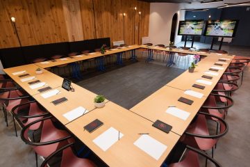 Salle Lemptégy : UNE AMBIANCE VOLCANIQUE ET INDUSTRIELLE POUR VOS ÉVÉNEMENTS. 2 versions : 100m² ou 240 m² entièrement modulables. Profitez d’une salle tout confort, modulable et dotée d’équipements techniques performants. Avec ses deux écrans plats LCD grand format, sa connexion internet et son système « Click Share » (chaque participant peut depuis son ordinateur ou sa tablette effectuer un partage d’écran), elle sera idéale pour organiser des événements sur-mesure. Les différentes possibilités d'agencements vous permettront de créer un espace détente, des salles de sous-commission ou des espaces de workshop.