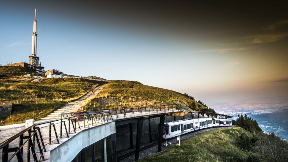 Embarquez à bord du train électrique à crémaillère et revivez l'histoire du puy de Dôme à travers le contenu audio.