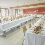 La capacité de la salle de réception est d'une centaine de convives. La cuisine est entièrement équipée. Du matériel de qualité est mis à votre disposition. Uniquement les week-ends en dehors des vacances scolaires.