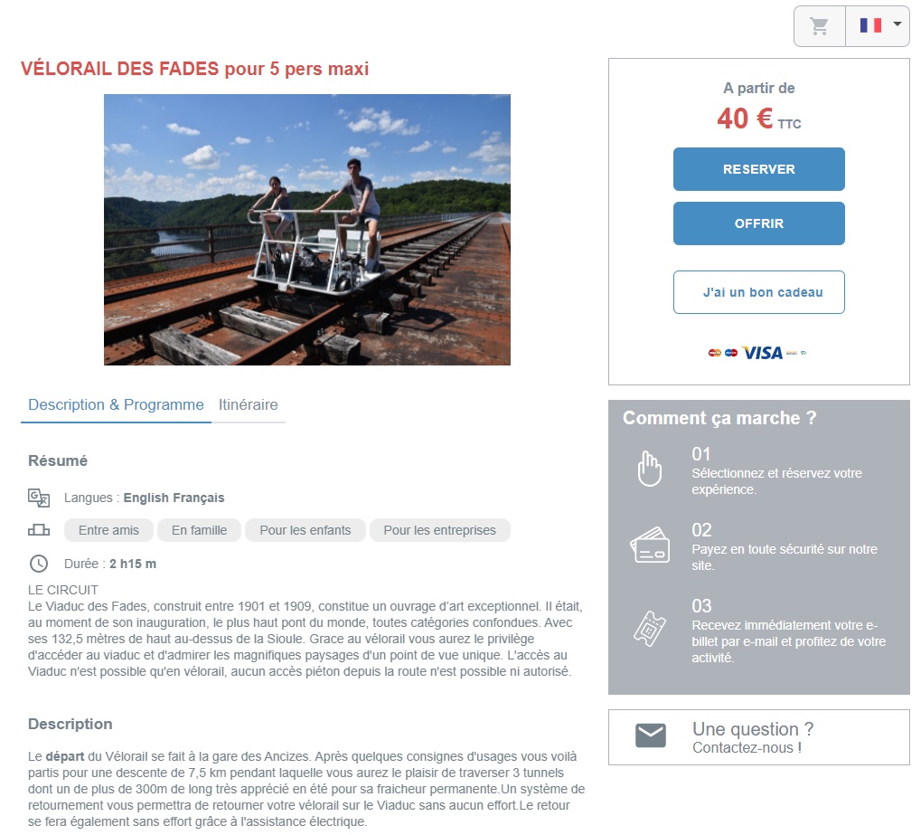 L’outil mis à votre disposition, issu du dispositif Open Expériences, vous permet d’afficher vos disponibilités et de proposer la réservation en ligne sur les site de Combrailles Auvergne Tourisme et Auvergne Destination (ou autre office de tourisme selon vos partenariats) et votre propre site. Ce système est une Place de marché régionale. L’Office de tourisme connaît vos disponibilités en temps réel pour mieux vous promouvoir et répondre aux demandes !