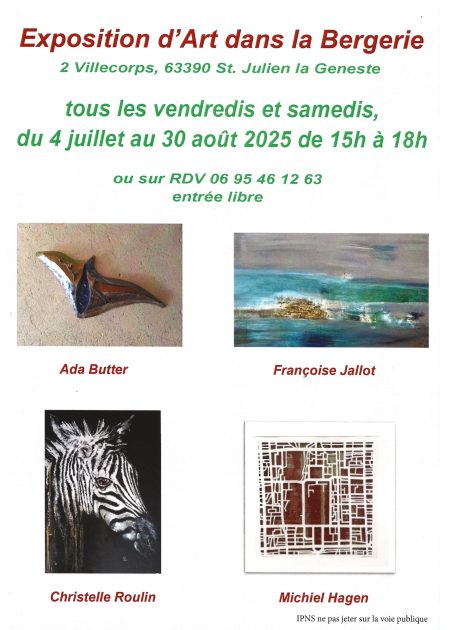Une exposition est organisée dans la bergerie pour la troisième année dans les mois de juillet et août. L'œuvre "peintures et sculptures" est de 2 artistes français et 2 artistes néerlandais.