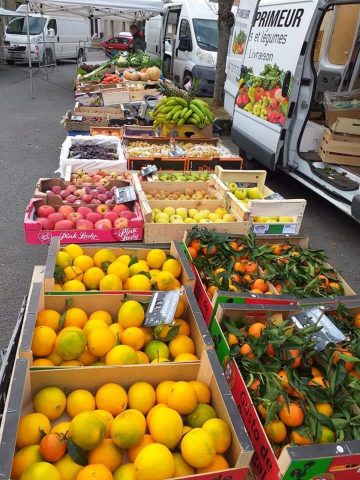 Autour de 8 exposants (variables) : vente de confiture, miel, plantes légumes et fleurs, vin, bière, apéritifs, fromage et yaourt de chèvre, œufs, poissons, biscuits, Vrac en Combrailles, viande et pâté.