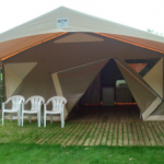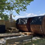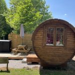 1 bungalow toilé de 4 pers, et 4 logements insolites : barrels/ tonneaux tout en bois, avec terrasse et salon de jardin.