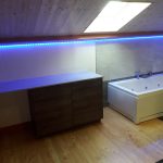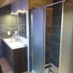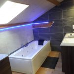 Une salle de bain de 12 m² équipée d’une double vasque, d’une douche 120x90 et d’une baignoire balnéo 200x90. WC séparé.