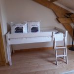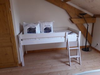 Une chambre de 17 m² avec lit de 140x190 et un lit mezzanine 90x190.