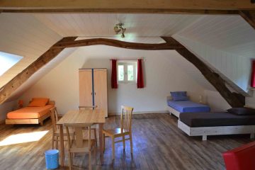Gîte niché dans la vallée de la Morge. Retenue de la Sep, Gour de Tazenat, la Sioule, station thermale, viaduc des Fades, Méandre de Queuille, Vulcania, chaîne des Puys. Idéal pour rando, pêche et VTT. Terrain arboré. Grande pièce lumineuse au 2ème étage.