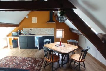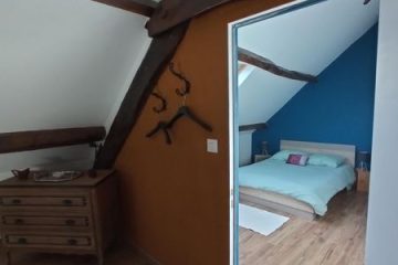 Gîte pour 4 pers. Possibilité de regrouper avec la maison d'hôtes de 3 chambres pour 12 pers. en totalité. Grand terrain arboré, terrasse et barbecue. Le tout dans une ancienne ferme rénovée. Restaurant sur place et sur réservation. Potager et basse-cour.