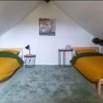 Dans cette chambre, il y a un escalier, vers la mezzanine, où il y a 2 lits simples. 80 x 200