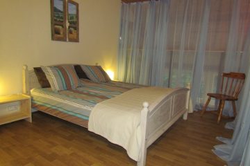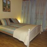 Le gîte a un grand séjour agréable avec cuisine, il dispose d’une chambre à coucher ayant un lit 2 personnes, et d’une chambre à coucher avec lits superposés dont le lit inférieur est un lit à 2 personnes. Une grande salle de bain est présente.