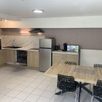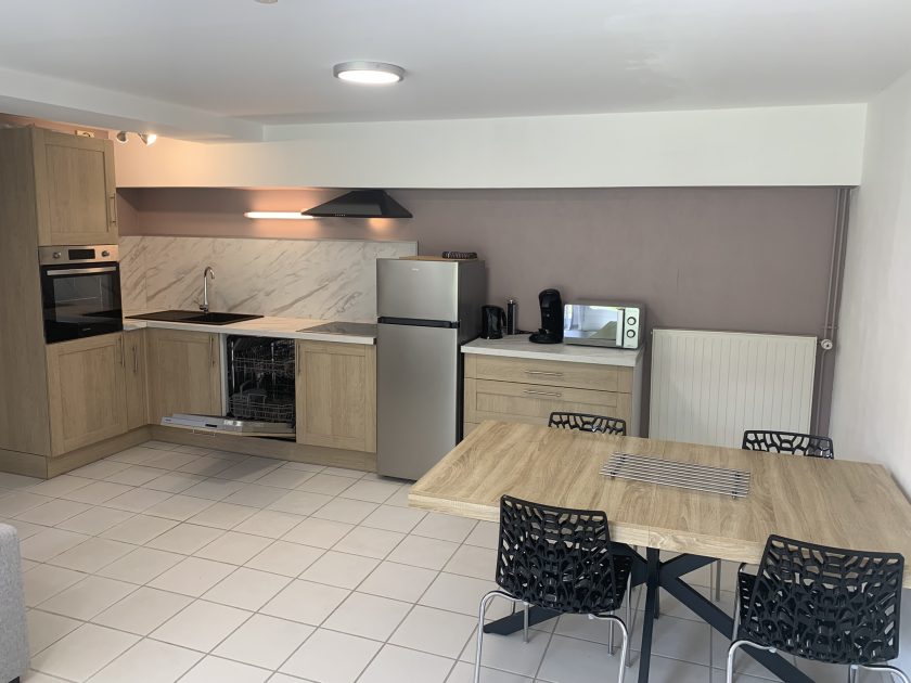 Appartement type F1, adpatée pour les PMR. Grande pièce principale avec cuisine toute équipée, coin salon (canapé) avec télévision connectée (chaînes satellites). Chambre avec lit double. Salle de bain avec grande douche à l'italienne et WC.