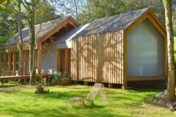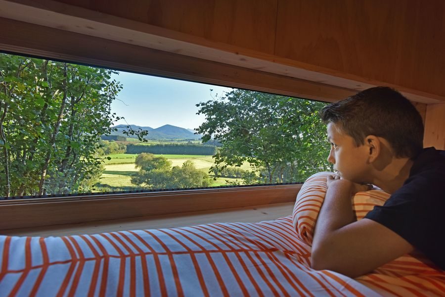 Perché à 900 m d'altitude, le Bois Basalte offre des vues imprenables sur les Puys et le Sancy. Ces cabanes contemporaines éco-construites sont des espaces de vie à partager en famille ou entre amis. Un sauna et un bain norvégien pimenteront votre séjour.