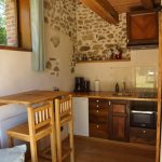Le mini-loft c’est un gîte confortable pour deux qui est entièrement équipé, afin que vous puissiez profiter au mieux de votre séjour. Une jolie porte coulissante donne accès au salon au rez-de-chaussée. Il y a une kitchenette équipée avec une plaque électrique, four à micro-ondes, frigo, bouilloire et une cafetière filtre. Aussi au rez-de-chaussée il y a la salle de bain avec toilette, lavabo et une douche spacieuse. Par un escalier robuste de chêne vous arrivez sur la mezzanine avec un lit double (1.60 x 2.00m). À l’extérieur vous pouvez vous détendre sur la terrasse devant le mini-loft. Également vous êtes libre d’utiliser le reste du jardin (à l’avant de la longère).