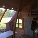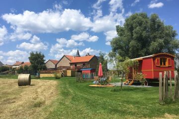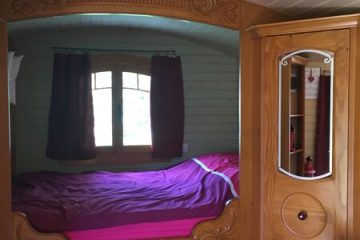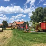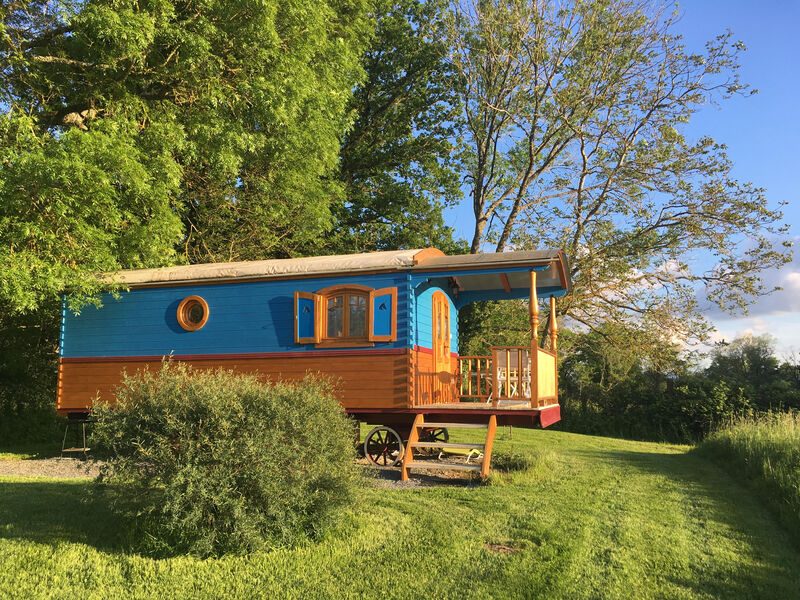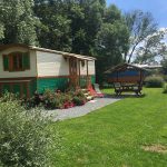 Trois roulottes typiques et luxueuses, deux tiny houses, à 600 m d'altitude, sur un parc de 2 ha, au cœur du village de 300 habitants. Salle de rencontre conviviale avec cuisine d'été ouvrant sur terrasse spacieuse mise à votre disposition. Piscine.