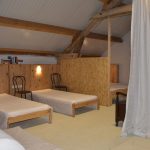 Dortoir pour 8 personnes dans le grenier d'une vieille grange avec un espace commun et une cuisine bien équipée.