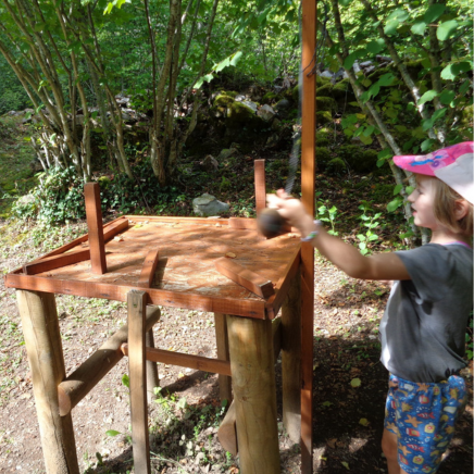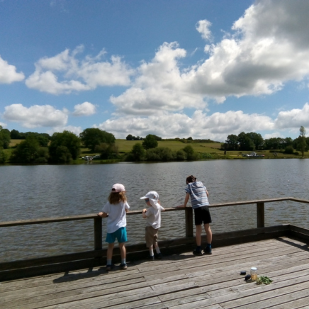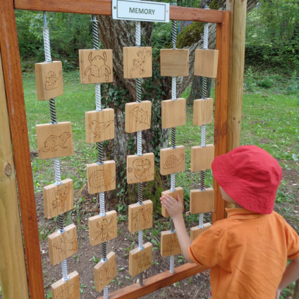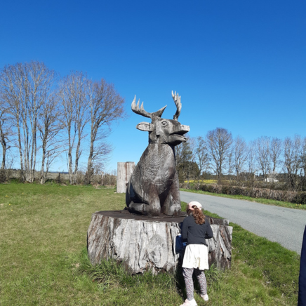 On se balade autour de ce petit étang en ramassant des bâtons pour les jeter dans l’eau (loin des pêcheurs 😉) – on y pique-nique, on s’arrête à l’aire de jeux pour s’amuser, avant d’aller dans le pré découvrir les sculptures d’animaux en bois , et pour les téméraires, grimper sur le dos du cerf !