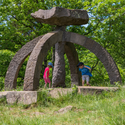 Jalonné de sculptures monumentales taillées dans la roche volcanique, le Chemin Fais’Art est un lieu d’exploration formidable pour petits et grands, où l’on prend le temps de se perdre, de revenir sur ses pas, de prendre un petit sentier pour découvrir d’autres sculptures.