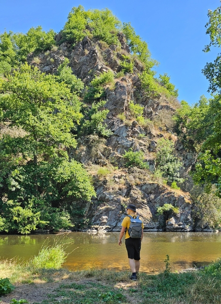 Malgré un peu de dénivelé pour nous rappeler qu’on est dans des gorges, on a adoré cette randonnée ! Longer la Sioule en sous-bois avant d’arriver sous le majestueux Château Rocher perché sur son éperon rocheux, puis découvrir des petits hameaux avant de dominer la vallée depuis le magnifique point de vue de Navoirat sur le méandre de Rochocol et le Château qui fait face, vraiment splendide !