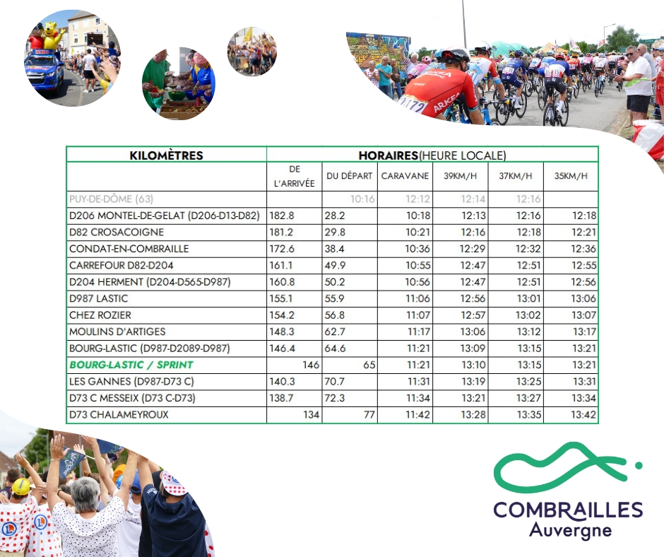 Estimations horaires de passage caravane et cyclistes
