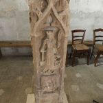 Elle contient un intéressant pilier historié, provenant de l'ancien cimetière des Capucins, ainsi qu'une Vierge en bois doré du XVIe siècle, sauvée des flammes par un paroissien à la Révolution.