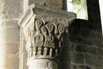 Les chapiteaux représentent l'assimilation de cultes antérieurs par le christianisme : des divinités païennes côtoient des hommes d'église.