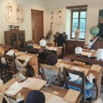 Personnages et matériel agricole disposés tout au long de la traversée du bourg. Evocation d'une école d'autrefois avec des documents scolaires d'époque.