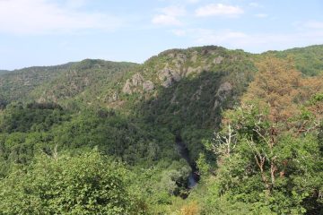 Point de vue sur les Gorges de la Sioule avec aire de pique-nique.