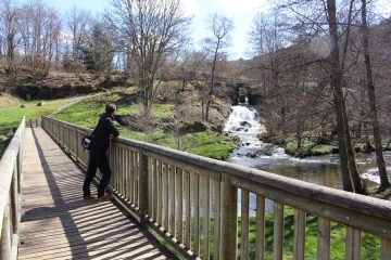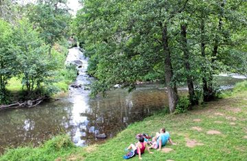 Accessible à pieds depuis le parking près du pont, la cascade est en fait une conduite forcée de la Sioule, créée par des moines pour l’installation d’un moulin.