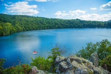 Le Gour de Tazenat, issu de la rencontre entre la lave en fusion et une nappe d’eau, est un lac de cratère ou maar, manifestation rare de l’activité volcanique. Le résultat est spectaculaire. Restauration possible auprès du gour.