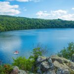 Le Gour de Tazenat est un lac de cratère ou maar, un cercle presque parfait de 700 mètres de diamètre, profond d'environ 66 mètres, d’une eau limpide, entouré de forêts.